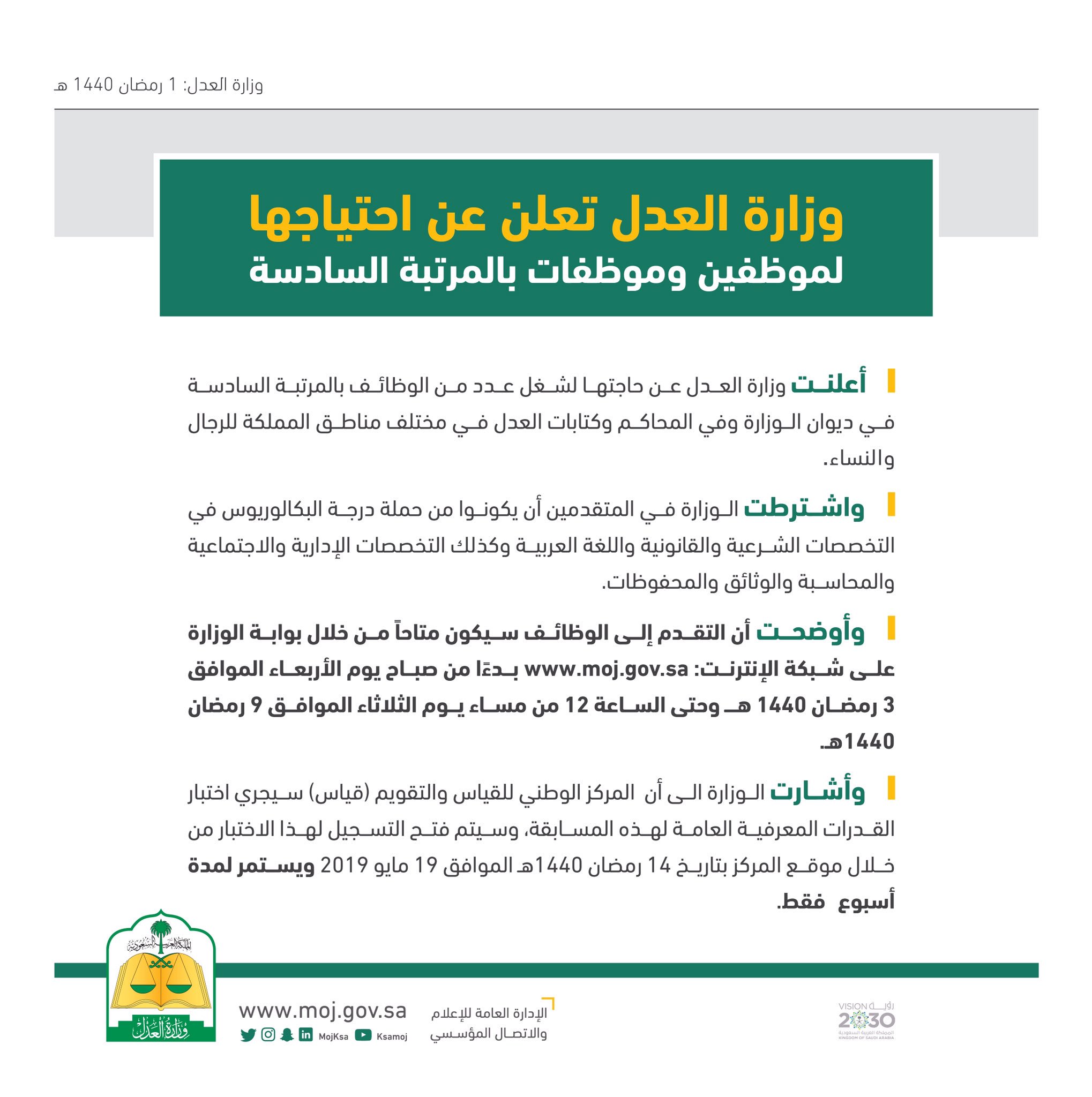 وزارة العدل تعلن استئناف المقابلات الشخصية للمرتبة السادسة المتوقفة.